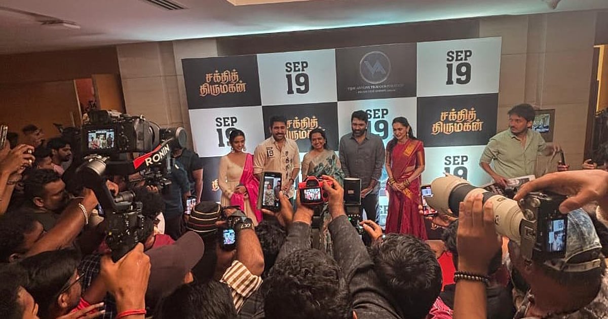 நாயகியாக த்ரிப்தி நடித்திருக்கிறார். படம் செப்டம்பர் 19 ஆம் தேதி வெளியாகும் என்று விஜய் ஆண்டனி அறிவிப்பு.தெலுங்கில் இப்படம் ‘பத்ரகாளி’ என்ற பெயரில் வெளியாகவுள்ளது.படத்தில் சந்திரசேகர், சுனில் கிரிபழனி, செல் முருகன், கிரண் உள்ளிட்டோர் நடித்துள்ளனர்.சக்தி திருமகன் படத்தின் முன்னோட்ட நிகழ்ச்சி.சென்னையில் நடைபெற்ற சக்தி திருமகன் படத்தின் முன்னோட்ட நிகழ்ச்சியில் பங்கேற்ற பிரபலங்கள்.